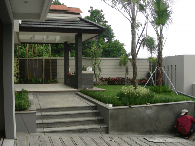Rumah seluas 1000M2 dikawasan perbukitan Semarang, Jawa Tengah dengan konsep Resort, memiliki taman yang luas, Material perpaduan batu alam, marmer, dan cat dinding untuk Indonesia Modern Style nan indah